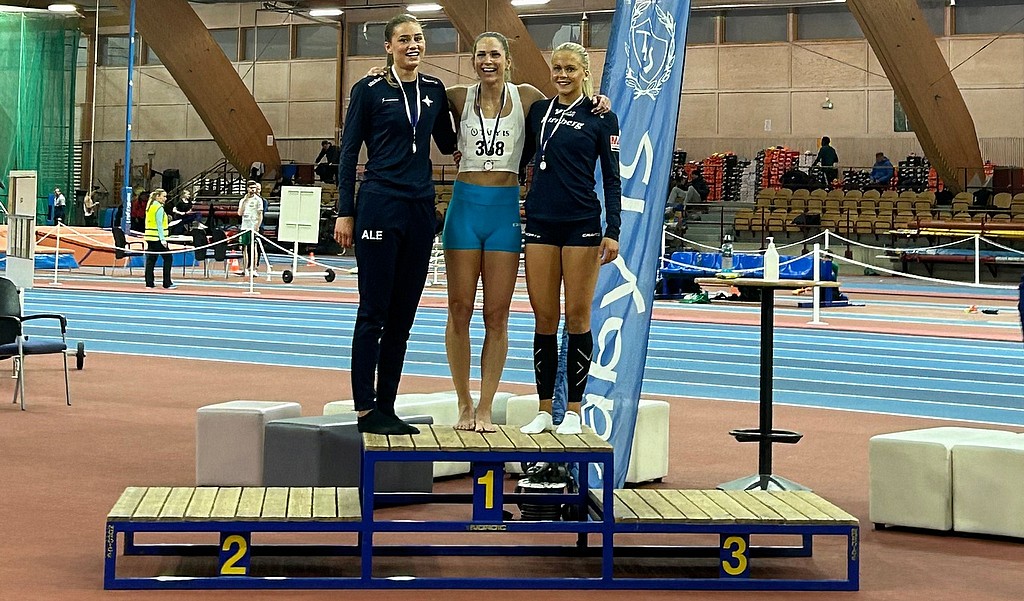 Kaddy Darbo hoppade 1.40 i höjd och Binta Darbo grejade 1.35 i F15. Det var pers för båda. Ännu högre hoppade Jacqueline Torgner som i gympadojor tog hela 1.51. Jacqueline fick inte plats i sin egen åldersklass utan fick hoppa med dem som är ett år äldre. Men hade hon fått hoppa i F13 hade hon vunnit. Hon stötte även 7.27 i kula och sprang 60m på 9.01.