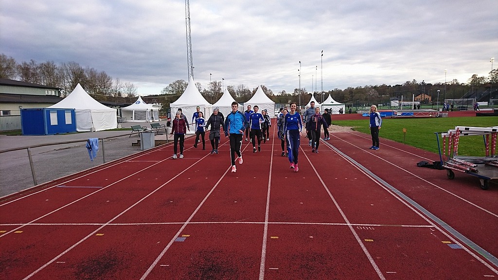 Vi provade på tävlingsuppvärmning och vad som är bra att ha med i rörelser och löpskolsövningar.